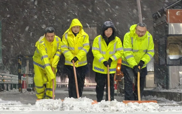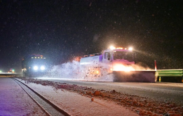 集團所屬各營運管理中心加大應急人員設備投入,采取多機械聯合作業、加大融雪劑撒布量、鏟雪車梯隊作業、警車壓速帶道等綜合措施,在重點路段開展循環除雪作業。同時,依托一路多方聯動機制,與鄰省緊密協作,在省界路段實現除雪作業高效銜接,保障跨省車輛安全有序通行。