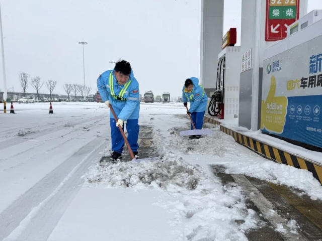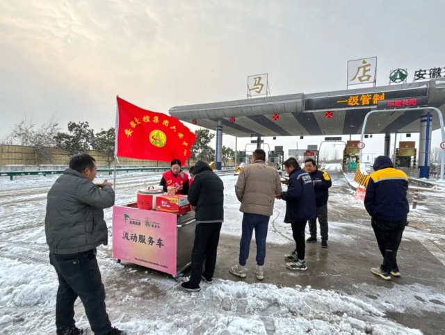 各道口及時清掃廣場積雪,持續開展“暖冬行動”,設置便民服務點,開放溫暖休息場所,為滯留司乘提供熱水、簡餐、充電、取暖等貼心服務,在風雪中傳遞“皖美高速”的溫暖。此外,各服務區強化現場管理,在易結冰區域采取撒布融雪劑,鋪設防滑墊、麻袋等防滑措施,保障行人車輛安全通行。加油站保障油料充足供應,及時清理加油區及出入口通道積雪。
